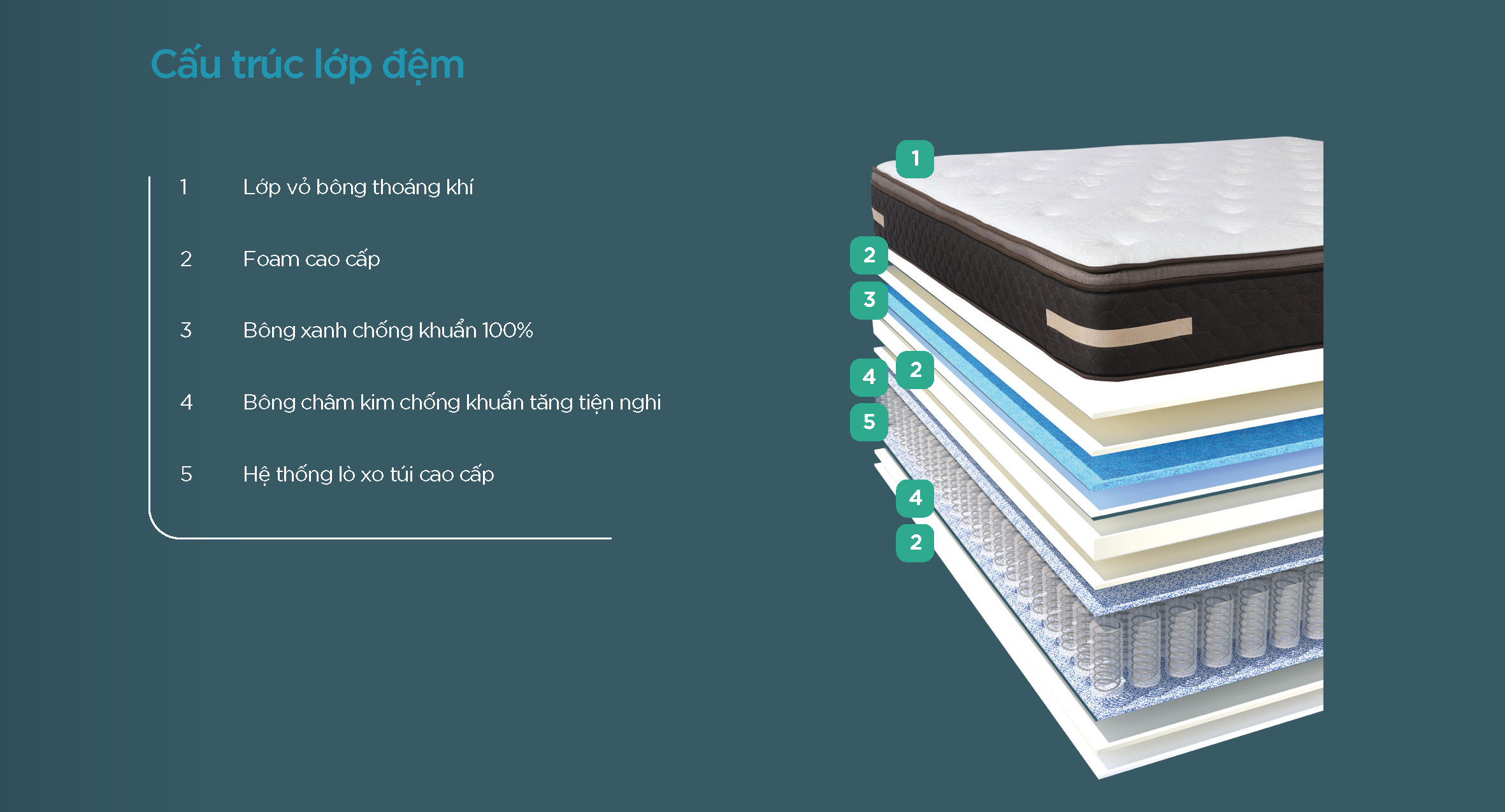 Foam cao cấp: Tạo độ đàn hồi và sự êm ái lý tưởng.